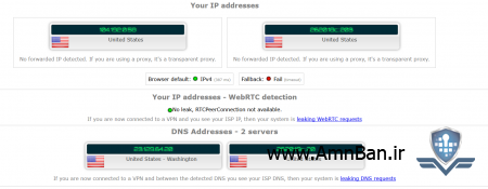 برای اطلاع از وضعیت نشت آیپی های خود به آدرس https://browserleaks.com/webrtc مراجعه فرمایید.
